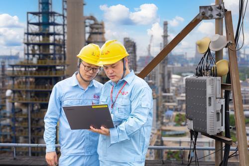 近日,中韩石化自主建设的“5G+北斗”融合定位系统二期项目正式投用。该系统依托AI视频分析技术,对厂区485个关键点位进行全天候智能监测,新增人员聚集风险预警、人脸识别等功能,自动识别烟雾、明火等安全隐患,推动安全管理从传统人工巡检向智能主动预警转变。图为信息中心人员在厂区5G基站旁测试该系统定位准确率。