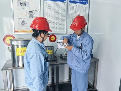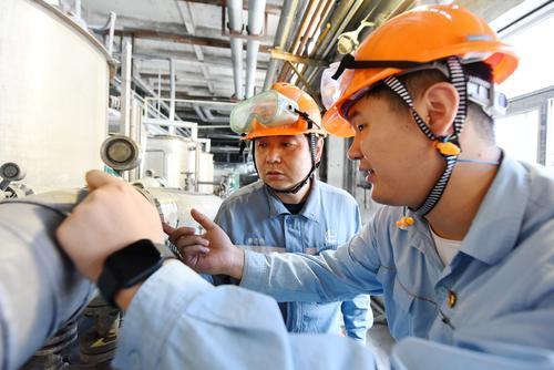 图4:齐鲁石化深入开展“质量月”活动,组织科室与车间技术人员对工艺安全控制、报警联锁、盲板管理等开展联合排查,以精准管控夯实质量根基。图为日前车间技术员检查锅炉装置区盲板状态。苏成武 摄