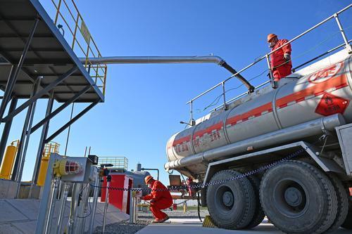 胜利油田孤岛采油厂采油管理十区将3个零散断块的运油工作进行整合,改变过去拉油车分头去井场运油的模式,用管线将采出的原油统一输送到垦128拉油点。同时,利用智能化管控平台,对现场装油作业中的静置时间、阀门启闭、装油流速、储罐液位、配套压力等进行实时监测和自动预警。整合优化后,该区日均减少运油车5车次,降低装油环节的人工作业风险,提升了本质安全管理水平。图为11月18日员工在垦128拉油点进行原油装车作业。