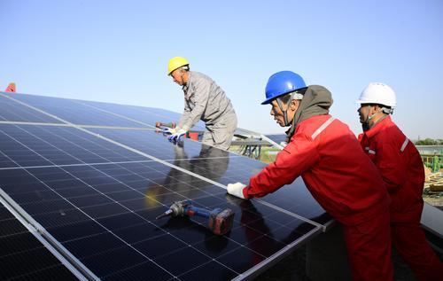 近日,华东油气分公司社区中心锚定绿色能源转型与节能降碳目标,完成边8平台0.3兆瓦光伏项目安装工作。该项目投用后,年发电量可达30万千瓦时,年减少二氧化碳排放20吨,实现经济效益与生态效益双赢。图为社区中心员工安装光伏板。 沈志军 摄 王慧琴 文