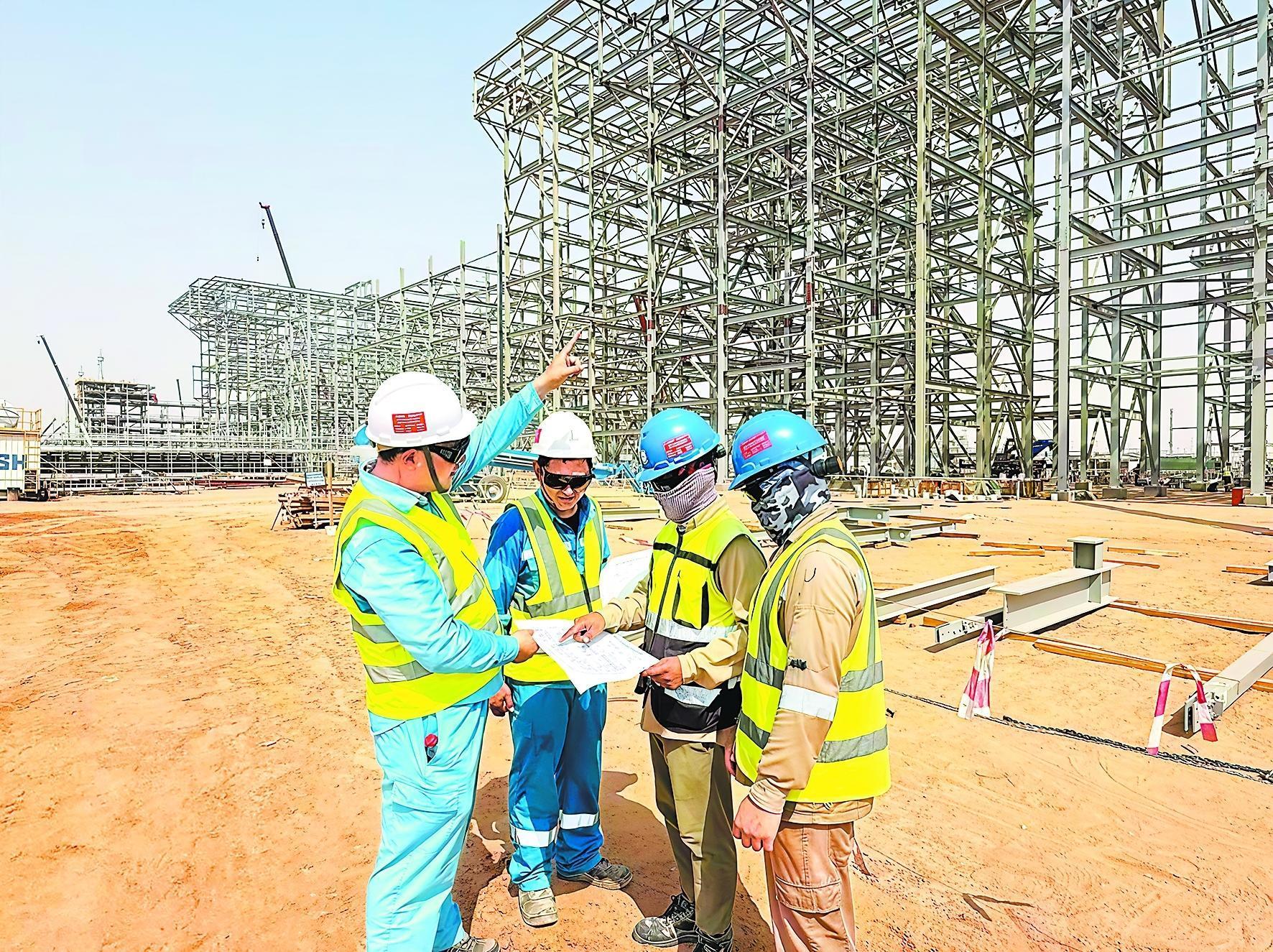 图为贾夫拉项目部中外工程技术人员现场开展模块化施工。唐 铭 摄●本报记者 田元武