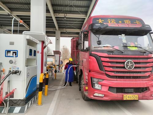 12月23日,山东德州石油首座LNG加气站——禹城17站正式投运。该站配备1座54立方米LNG橇装设备,设一台双枪加气机,可同时为两辆车提供充装服务,为区域内物流运输等行业提供高效环保的能源服务。图为该站员工服务客户。路 娟 摄
