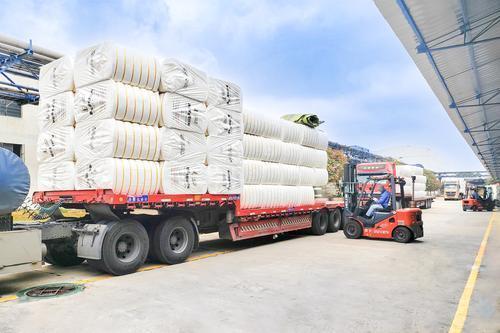 2025年,安庆石化与化工销售公司紧密协作,在满足市场常规产品供应的基础上,大力生产并推广高端腈纶产品,实现仿毛纤维产品的全系列生产,阻燃腈纶产销量超过200吨,高收缩纤维销量近万吨,创效明显。图为安庆石化组织腈纶产品出库。檀文盛 摄