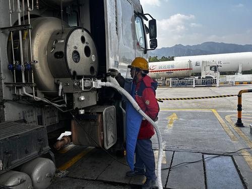 广东韶关石油紧抓新能源车需求,加速布局气电业务网络,构建覆盖物流主干道的清洁能源补给体系。2025年,建成投运LNG站4座、重卡充电终端134个,充电单枪日均电量384千瓦时,实现规模效益双突破。图为韶关石油乐昌服务区加能站员工为客户加气。赖日琛 摄 廖力铭 杨 红 文
