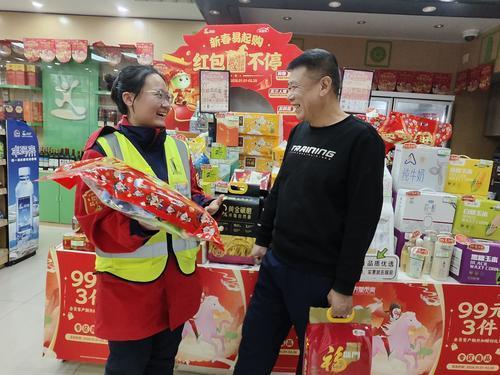 陕西石油积极开展“惠民年货节”系列活动,在近200座加能站设置年节商品专区,开展泵岛销售,打造“加油—购物”一站式消费场景。图为近日咸阳石油华昌加能站员工向顾客介绍年货节商品。刘 琴 摄 王 云 文
